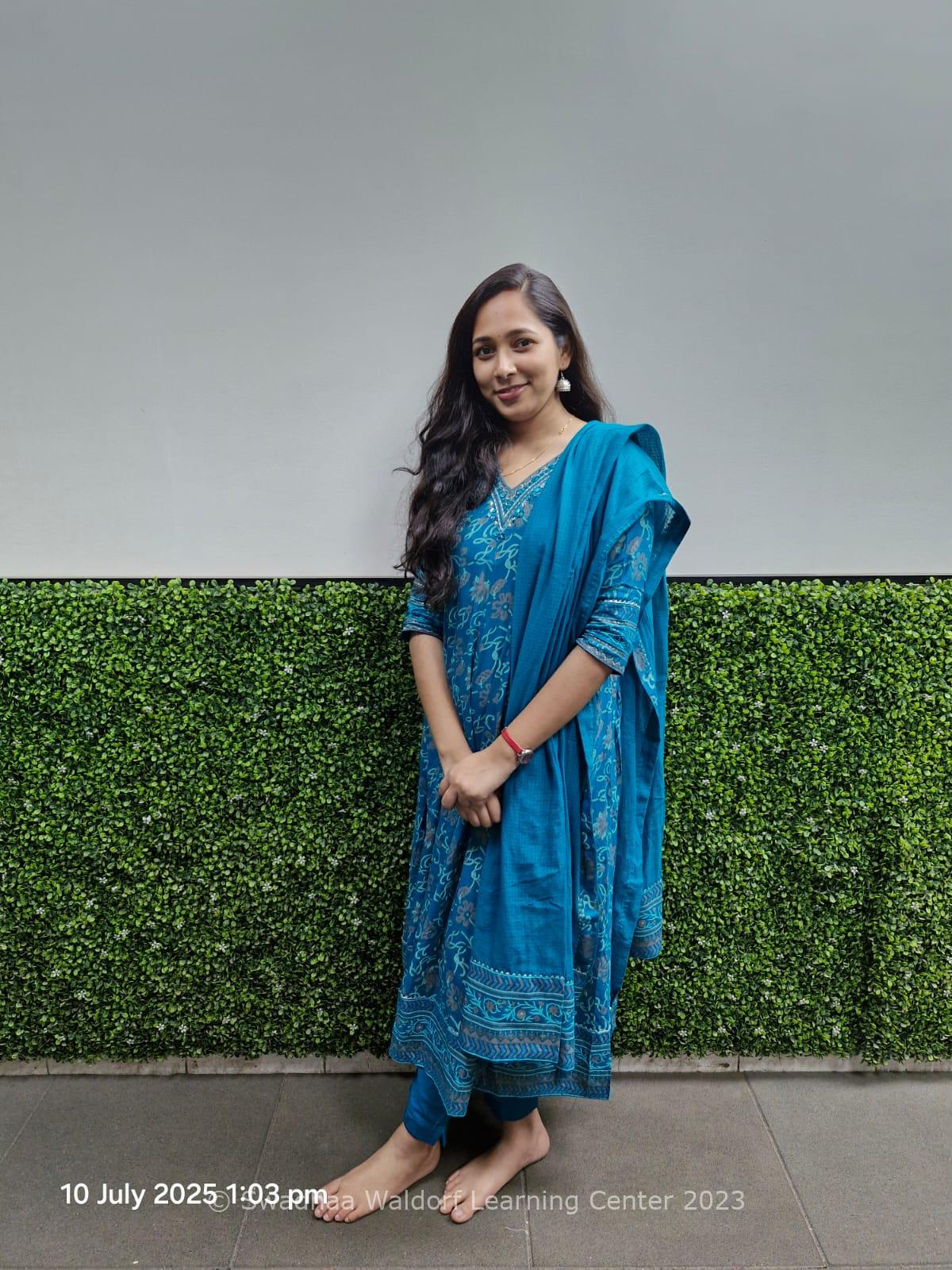 She started her journey with Swadhaa as a parent in 2020 and decided to join swadhaa Kindergarten, because during covid she attended online classes with her daughter which made a lot of difference in her way of thinking. From that time on she decided to be part of Swadhaa kindergarten. She has completed the Waldorf Early Childhood Foundation Certificate (IASWECE) from SADHANA, the Indian Waldorf Kindergarten Association. She has also attended a 10 days online workshop on Allowing Childhood to Blossom, conducted by Swadhaa.