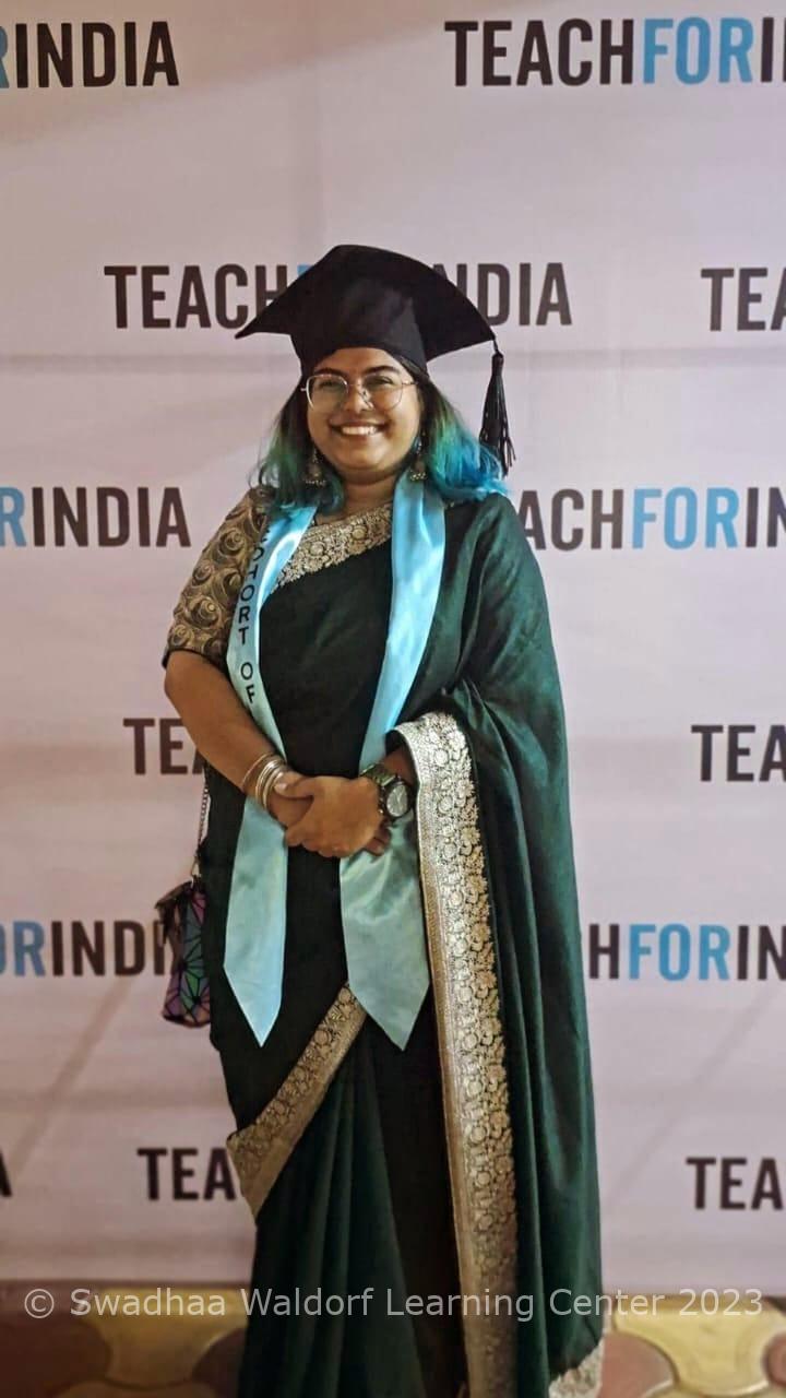 Ever since she attended the first orientation at Swadhaa as a parent, she felt a strong connection with the way things are done. To her it felt like a place where she could not only teach but also grow as a person. That experience stayed with her and made her want to be a part of this beautiful space—not just as a teacher, but as someone who is also learning and growing every day.